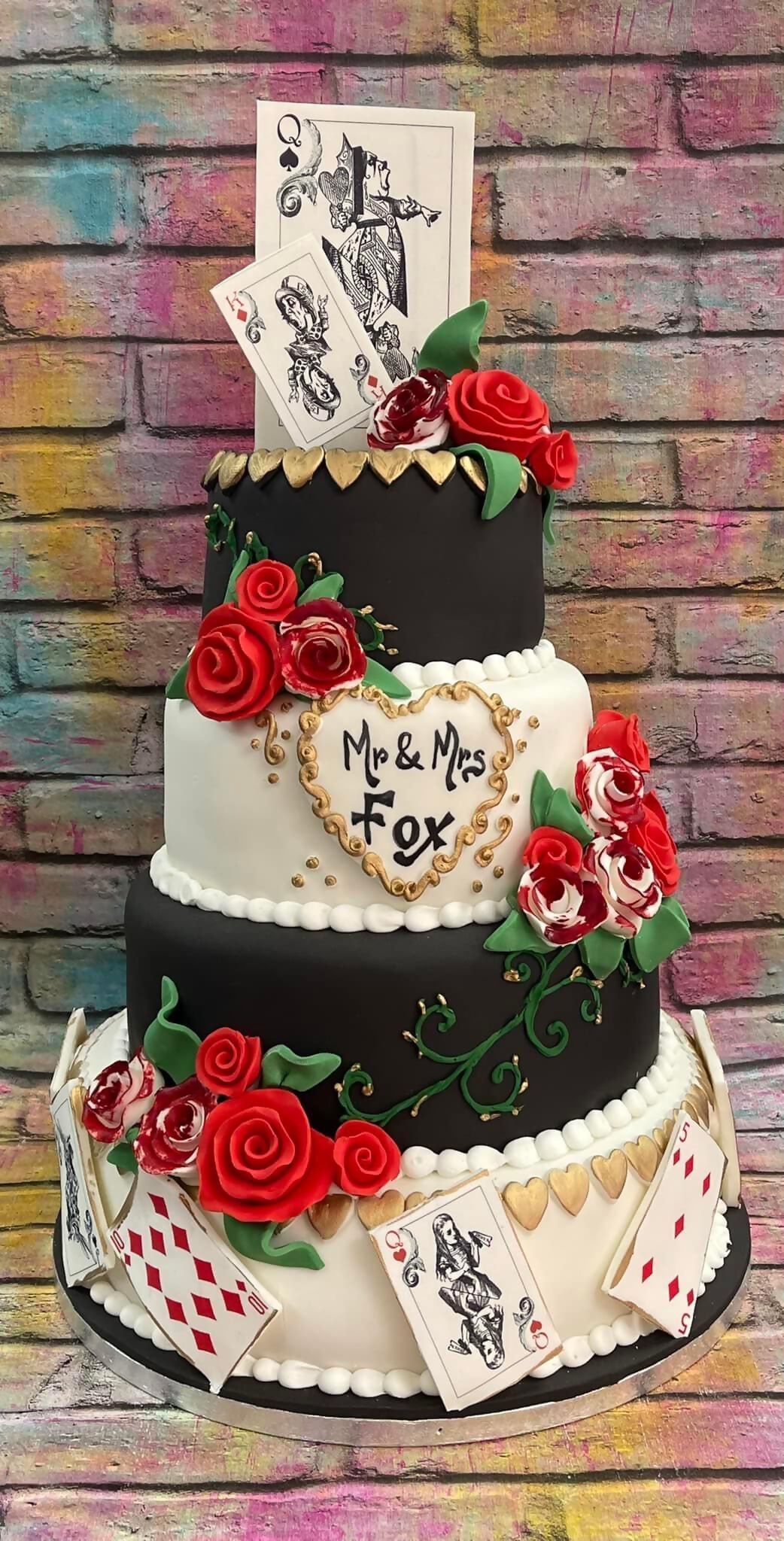 5 tier cake with red roses